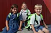 Nora-Emilie Hansen (f.v), Linnea Harbosen og Jørgen Nordstad Pedersen er tre av skolestarterne på Marikollen skole.