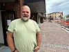 Lasse Løvlie i Kongsvinger Musikksenter ser at fortauet utenfor butikken hans i Brugata snart er ferdig lagt.