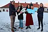 Regionsjef i Kavlifondet, Rune Austdal, og direktør i Q-Meieriene, Kristine Aasheim, hedret mor Ann Helen Stangnes og datter Fiona Aurbakken med pengepremie og diplom for sukkerfri sjokomelk.