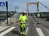 Formann for entrepenør BMO, Matteus Grzegorzewski, stengte gamlebrua idag. Den åpner ikke før rett før jul.
