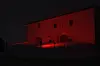 Oppe i Kongsvinger festning er Arsenalet badet i rødt lys natt til lørdag, noe verken Kongsvingers innbyggere eller festningens bestyrerne selv er helt sikre på hvorfor