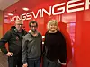 Roos & Ovlien har besøk av museumsdirektør Mona Pedersen som gleder seg til avduking av blått skilt på Aamodtgården lørdag.