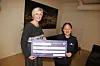 Stine Engen (t.v.) var veldig glad for overraskelsen fra Gjensidigestiftelsen som ble overrakt av Jannicke Stenberg Mykkestue.