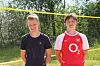 Jonas Haugland (17) (f.v.) og Oscar Kvernbakken (16) bestemte seg får å bygge en sandvolleyballbane sammen.