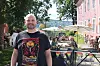 Styreleder i Vinger Blues & Rock, Mats Myrvold. Her utenfor Kafé Bohem som er et av stedene som har blitt med på prosjektet.