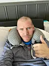Thomas Moen, her like etter at han kom hjem fra sykehuset, hadde 20 prosent sjanse til å overleve etter at han fikk multiorgansvikt. Nå er han utrolig takknemlig for hjelpen han har fått.