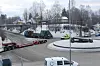Personbiler kom forbi, men trafikken stoppet da større lastebiler og likedan måtte vente på å kjøre over i motsatt felt i inngangen til rundkjøringen.