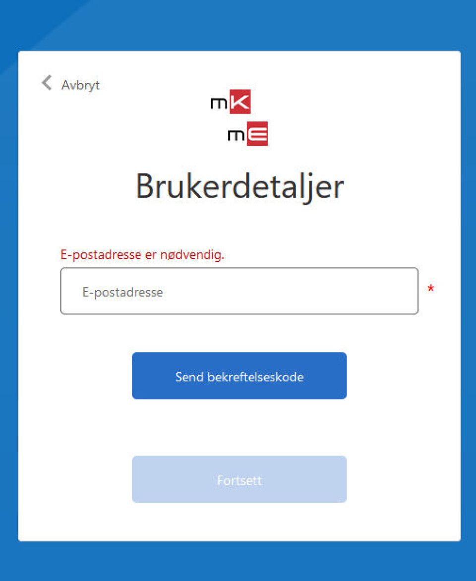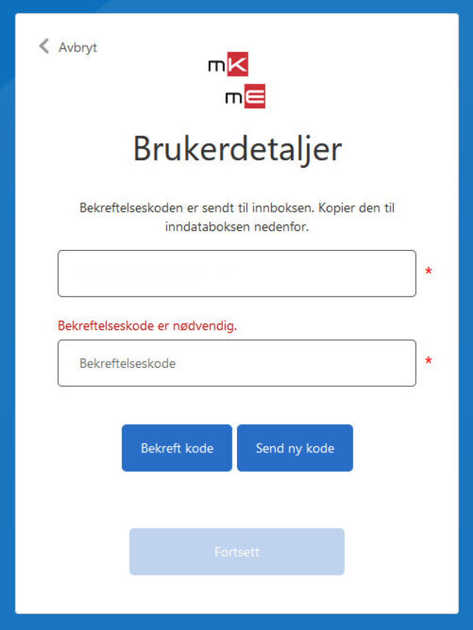 3: Legg inn din e-post som du har mottatt fra oss og klikk på «Send bekreftelseskode»: