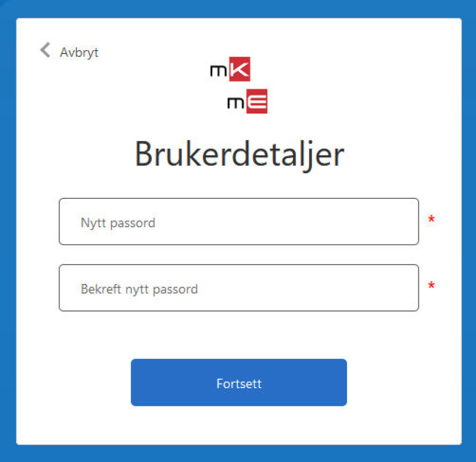 8: Legg inn passord og bekreft passord. Trykk «Fortsett».